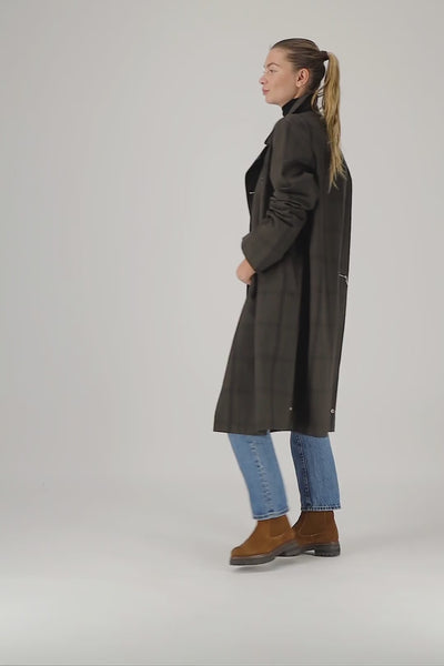 MANTEAU MARTIN ERI en coton déperlant à carreaux brun PDG