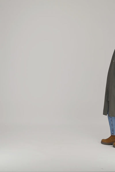 PARKA LOLA en coton enduit déperlant coloris olive avec doublure amovible en fausse fourrure bouclette